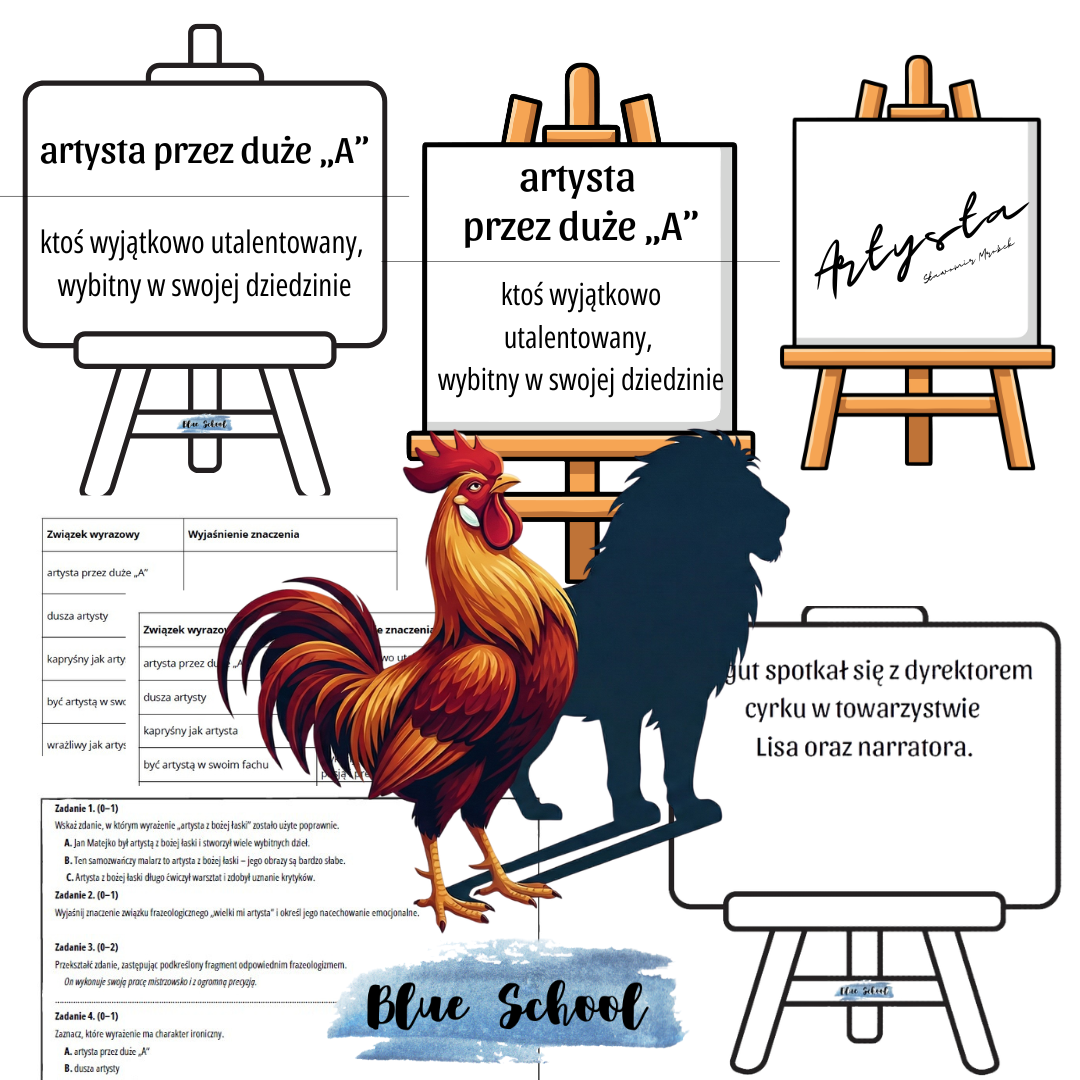 – związki frazeologiczne ze słowem artysta – w wariancie kolorowym i czarno-białym,